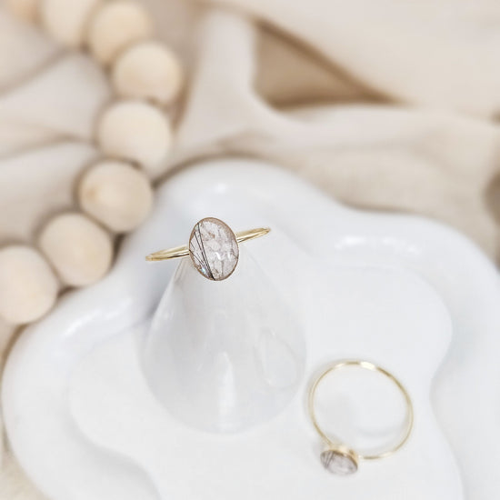 Pictured here is the 8x6 Cremation Oval Necklace and the 8mm Cremation Circle Ring, in 14K Rose Gold FIlled. Inclusions: ashes, fur and white pigment,