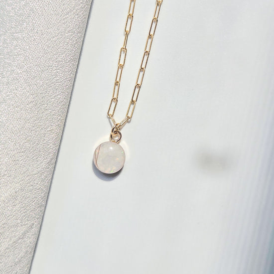 Pictured here is the Milk Paperclip Necklace in 14K Gold Filled, with baby's hair and crushed white Opal.