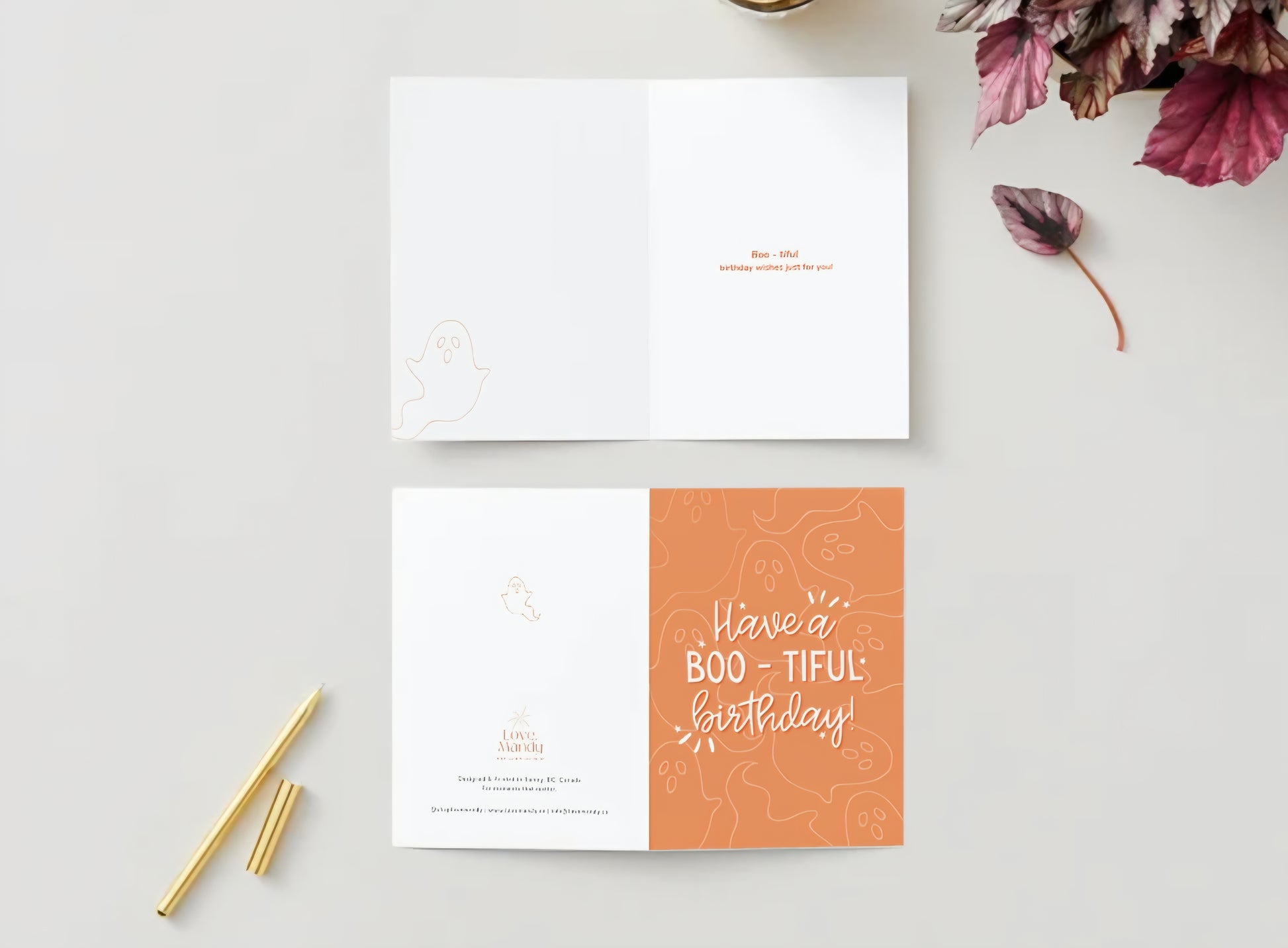 Printed on high- quality 5x7 thick card stock and paired with a classic white envelope, it's a delightful way to celebrate the spooky- season birthday.
