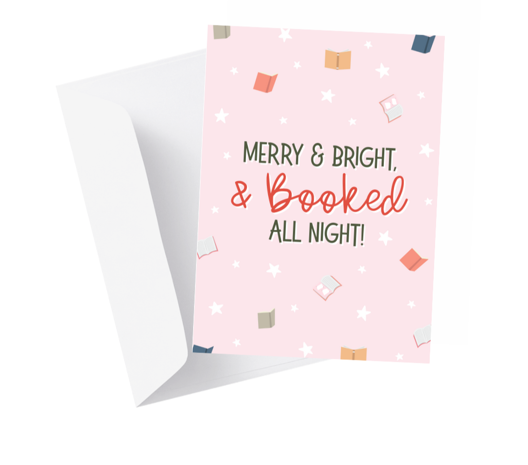 "Booked All Night" Christmas Greeting Card