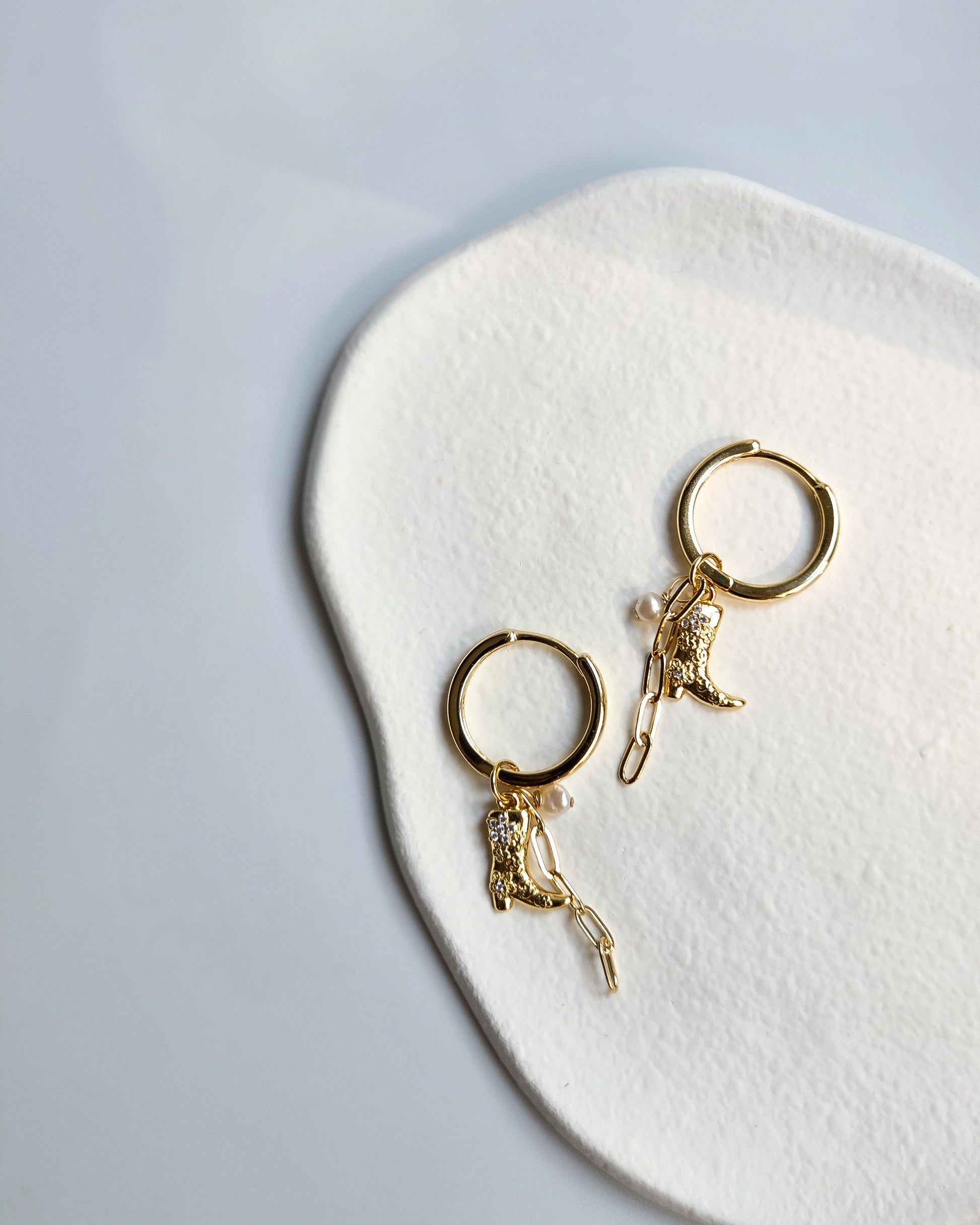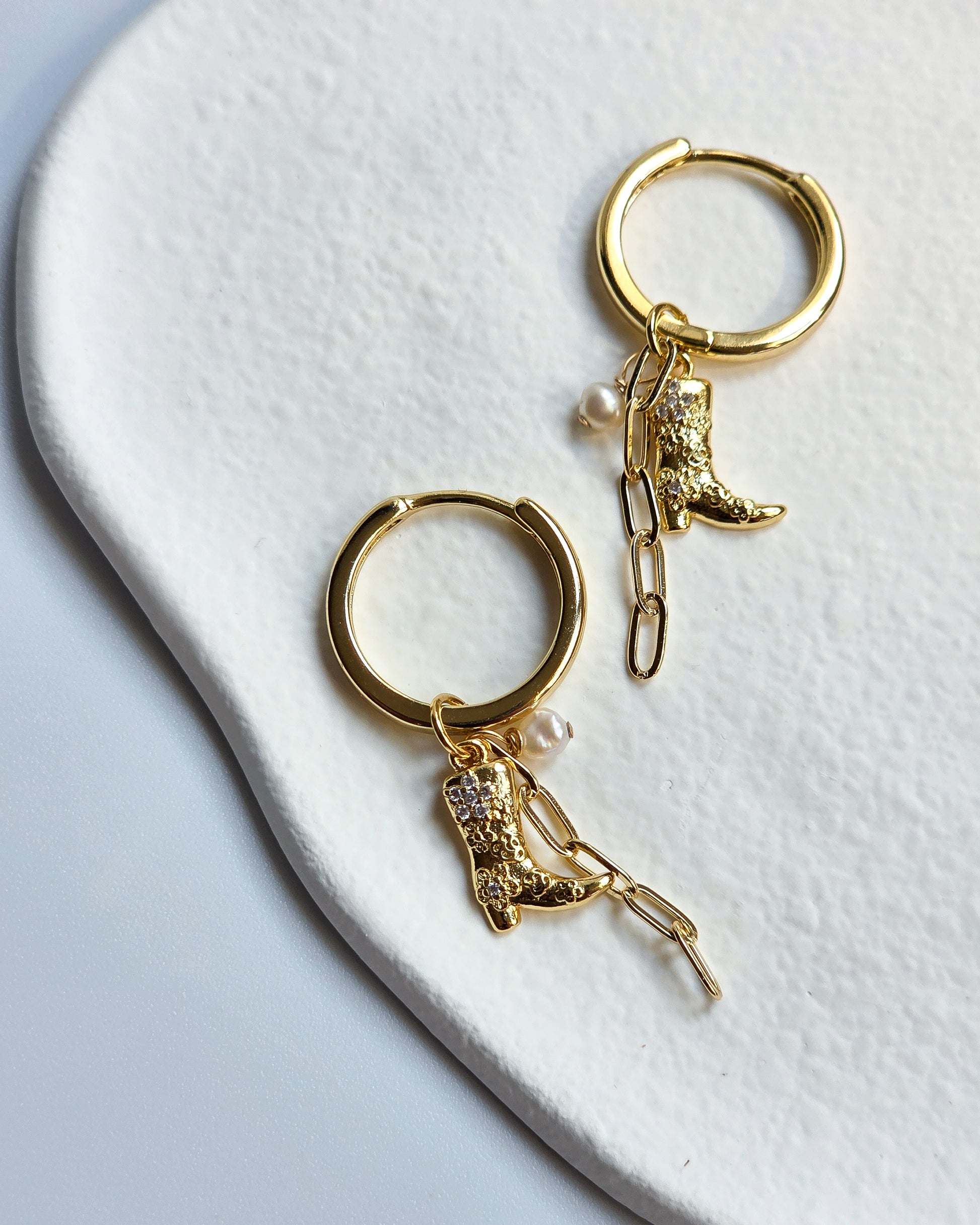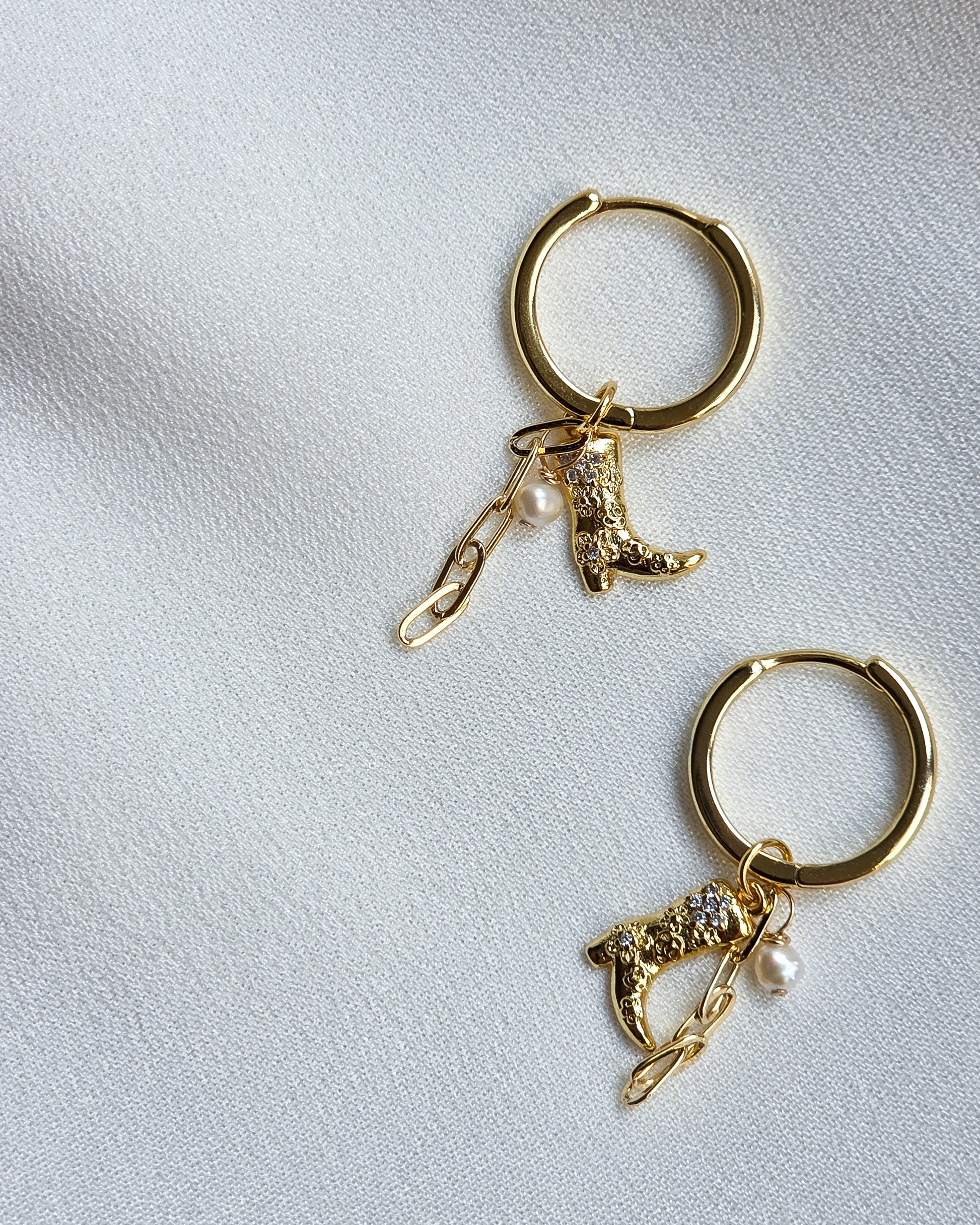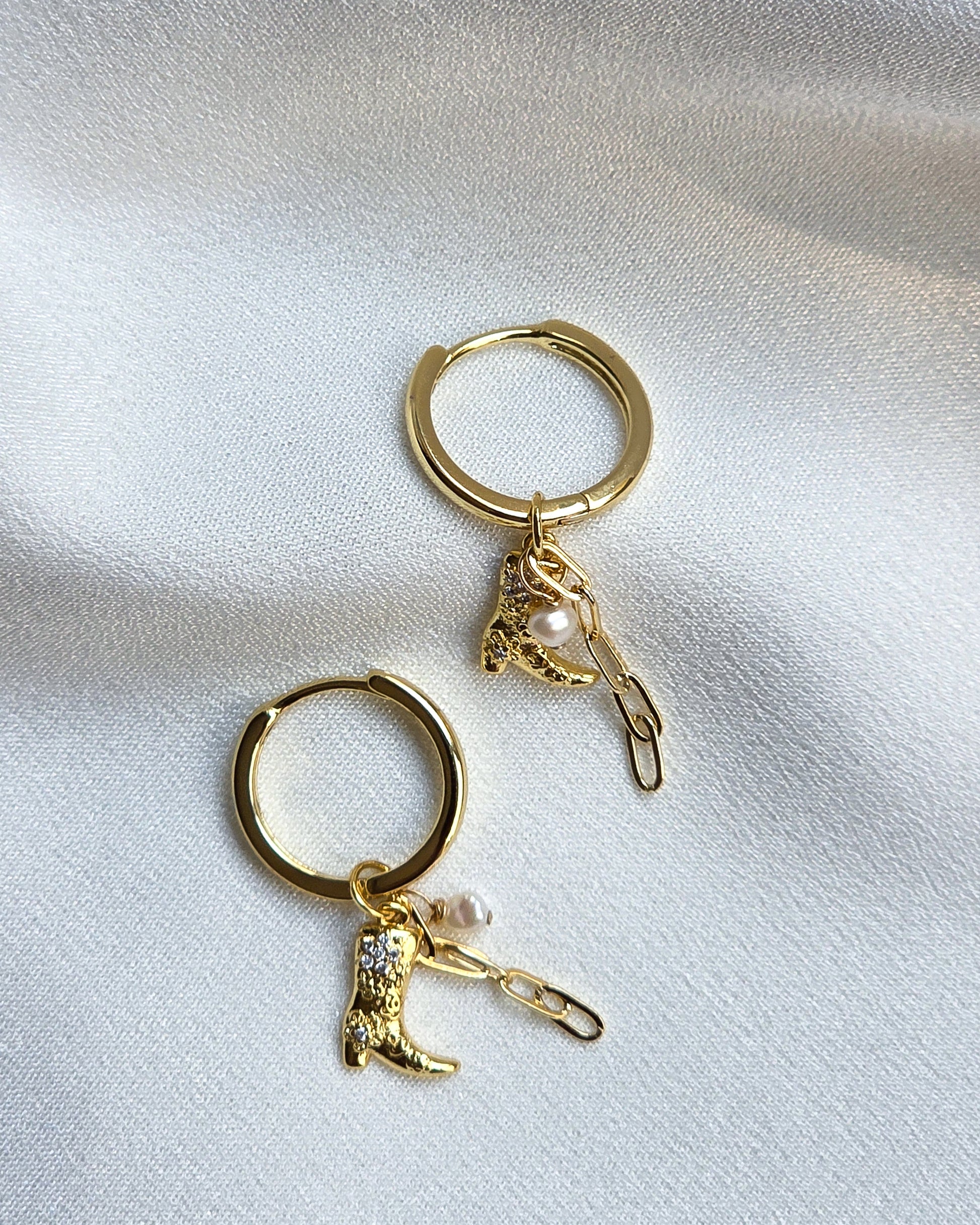 Step into your cowgirl summer with our charm hoop earrings- fun, flirty, and full of personality! These 18k gold- filled earrings feature three distinct charms that dance together in perfect harmony:
