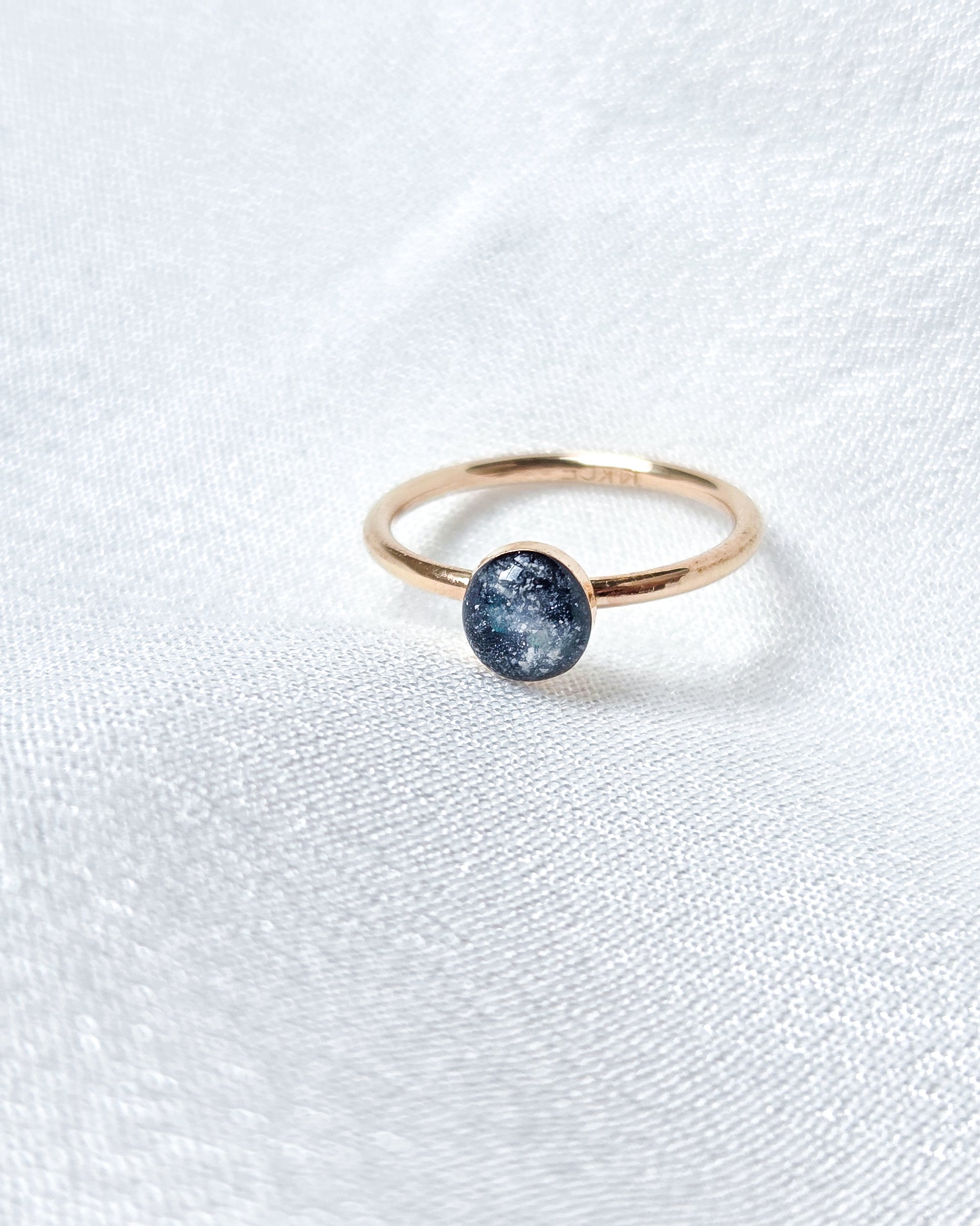 This memorial ring is designed to honour your loved one with elegance, durability, and everyday wear. Created with 925 Sterling Silver or 14K Gold filled metal - a long-lasting, hypoallergenic option that holds its shine beautifully for everyday wear. At the heart of the ring sits a custom stone infused with your loved one's ashes, gently layered with a soft white iridescent shimmer. The effect is subtle, catching light in a way that feels intimate and meaningful.