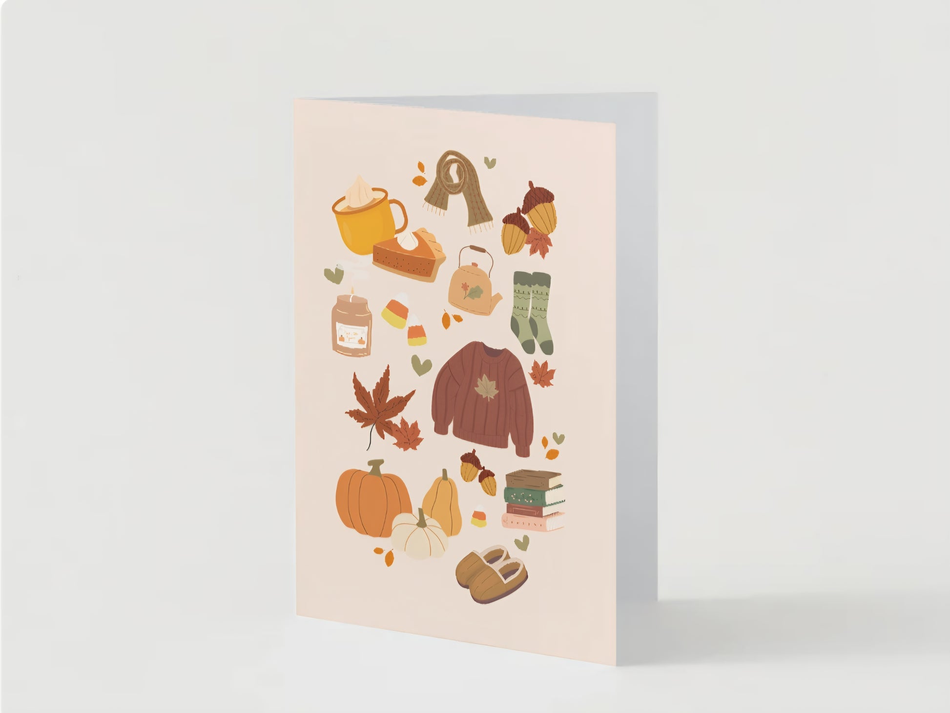 It's the perfect card to send cozy, heartfelt notes to friends and family. Crafted on high- quality 5x7 thick cardstock and paired with a classic white envelope, it's a versatile card for any fall occasion.