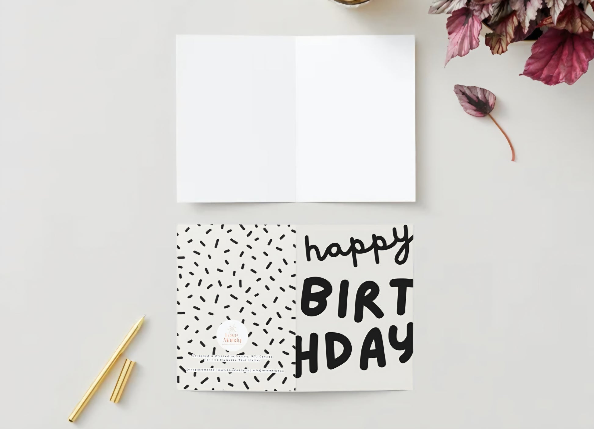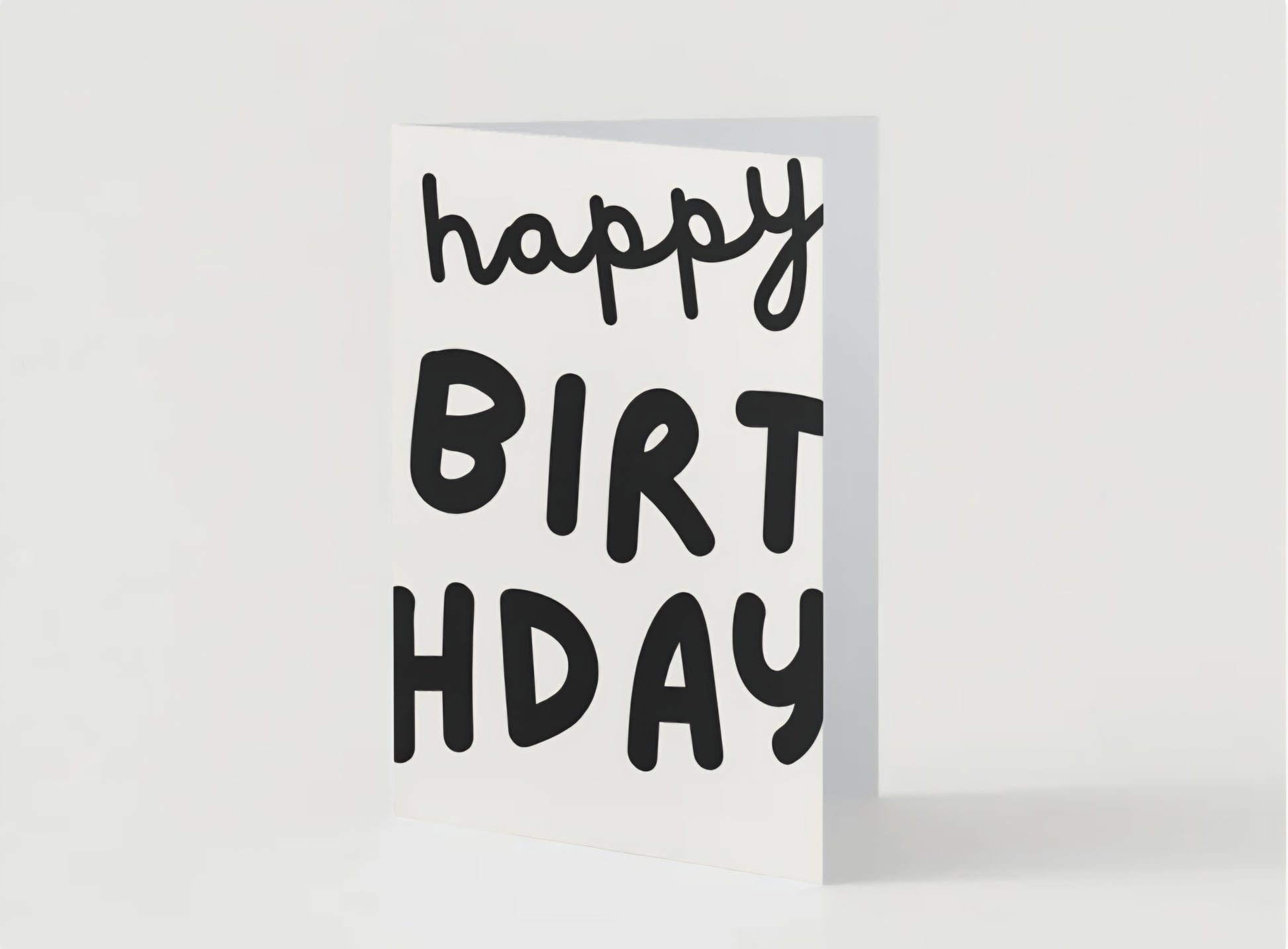 A timeless birthday classic. This minimalist card features a bold black script and the inside is blank for your own heartfelt message.