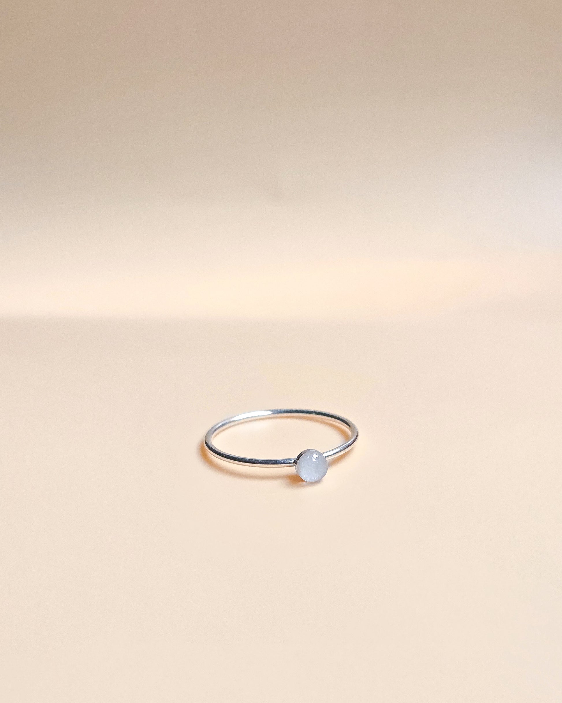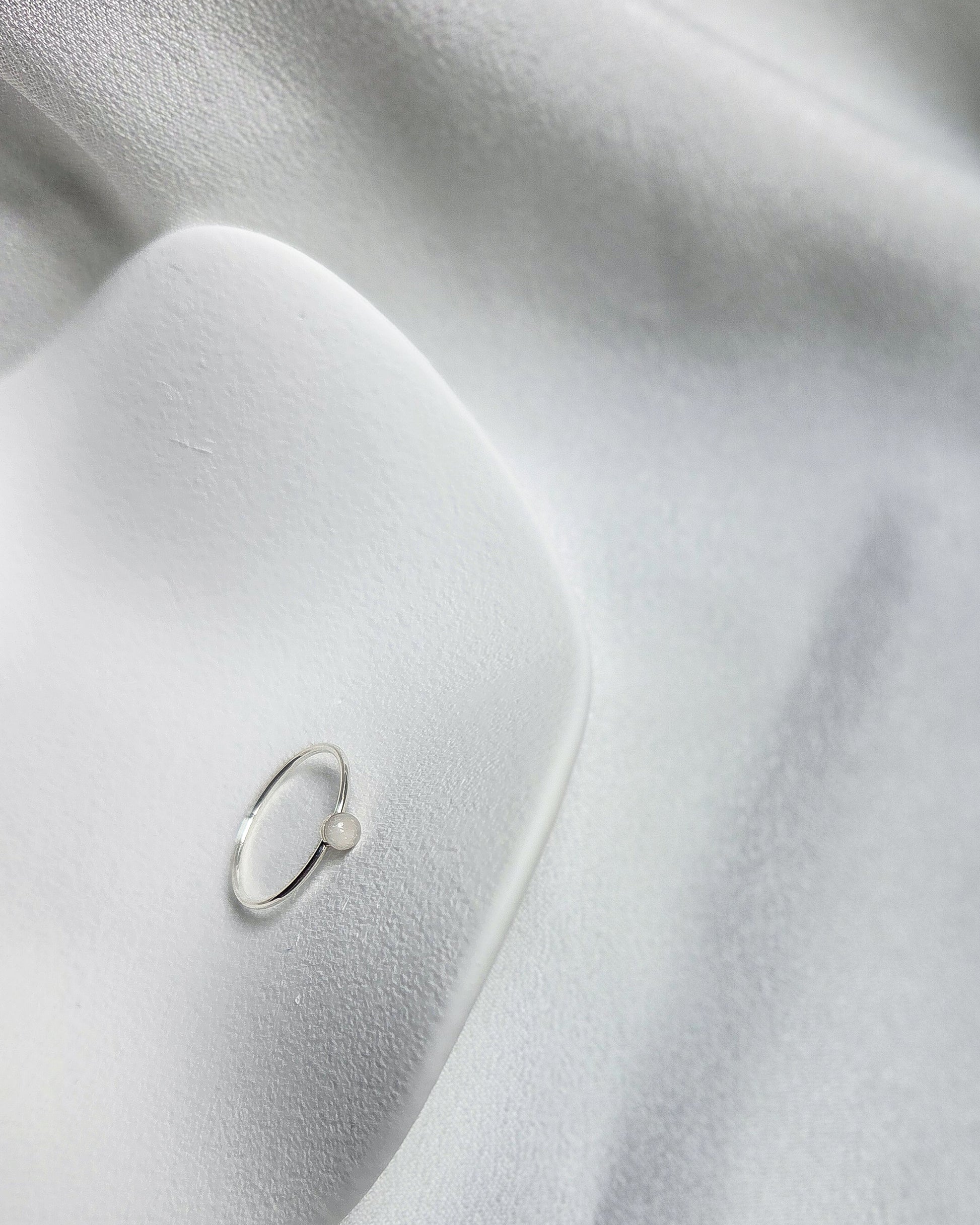Crafted with 925 Sterling Silver materials, this ring is perfect for everyday wear or stacking with your favourite pieces. The 3mm stone is enhanced with an iridescent white powder, for a soft glow. Prefer a more natural look? Simply let me know- your preferences will guide the design, making this keepsake uniquely yours.