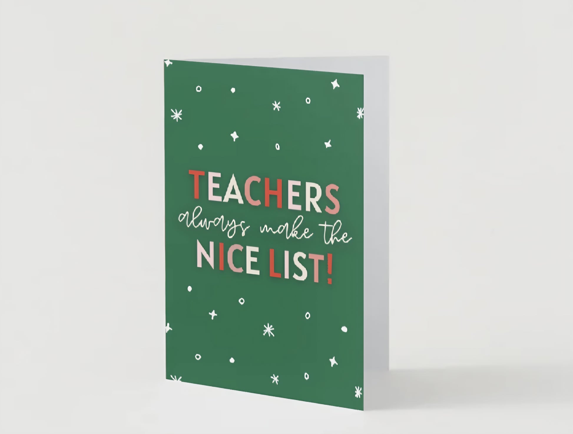 Printed on thick, high- quality, 5x7 cardstock, and paired with a classic white envelope, this greeting card is a thoughtful way to make your favourite teacher feel seen, appreciated, and definitely on Santa's nice list.