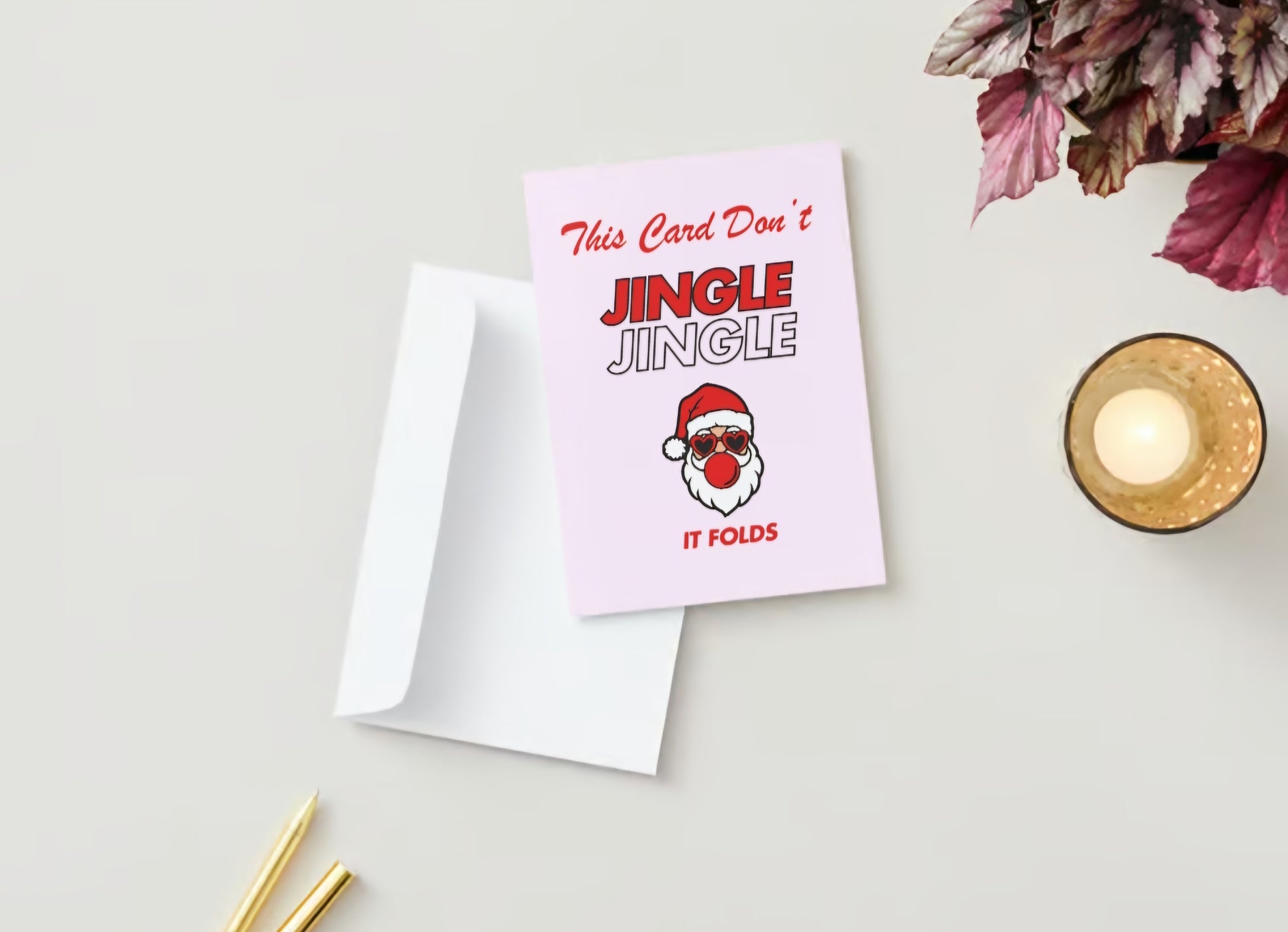 'This Card Don't Jingle Jingle, It Folds." Holiday Greeting Card